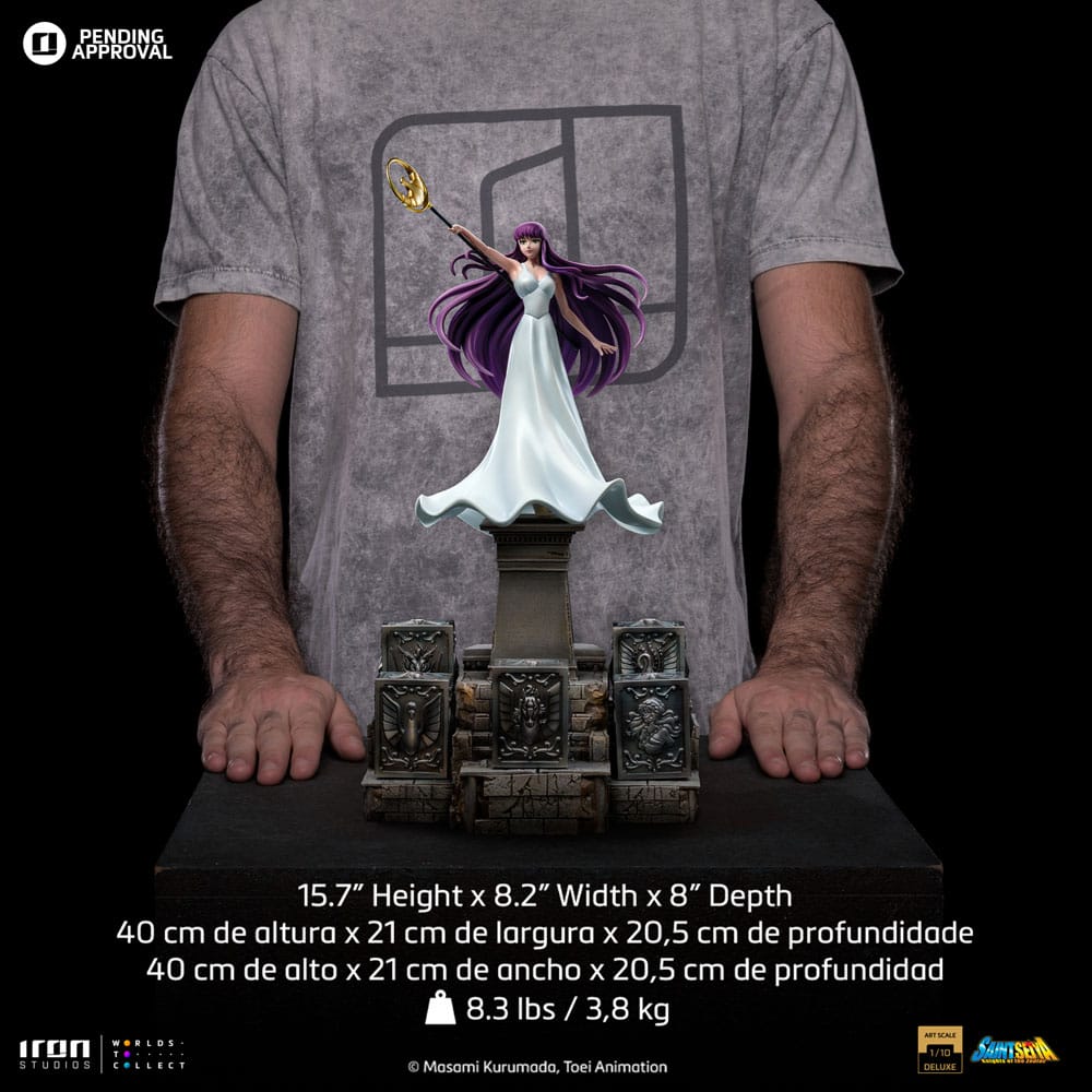 Da Iron Studios arriva la nuova imperdibile ed attesissima statua dedicata al mondo dei Saint Seiya: ecco la mitica Atena che si erge su di una base a tema!
