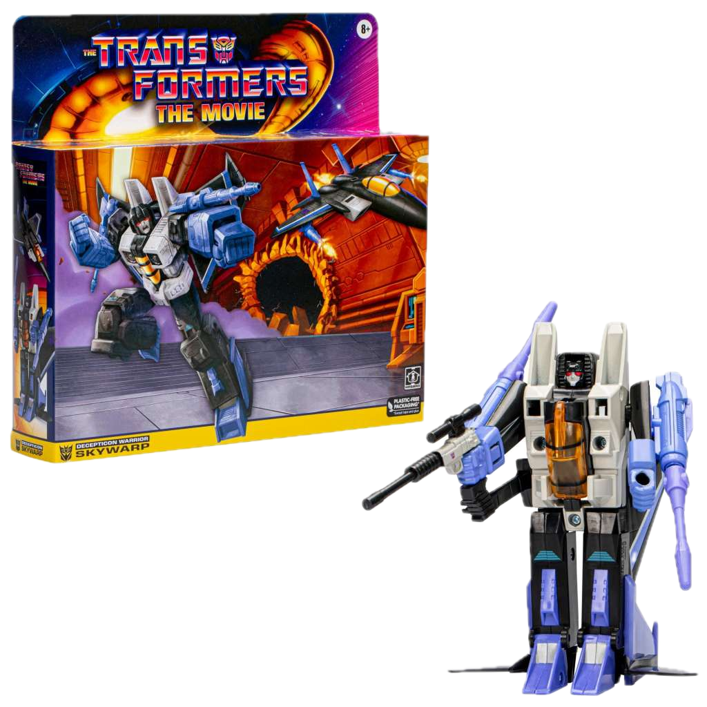TRANSFORMERS RETRO TRANSFORMERS THE MOVIE SKYWARP ACTION FIGURE La linea Transformers Retro presenta dettagliatissime Action Figure trasformabili con accessori e parti intercambiabili.